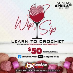 Welcome to Wine & Sip: Learn to Crochet